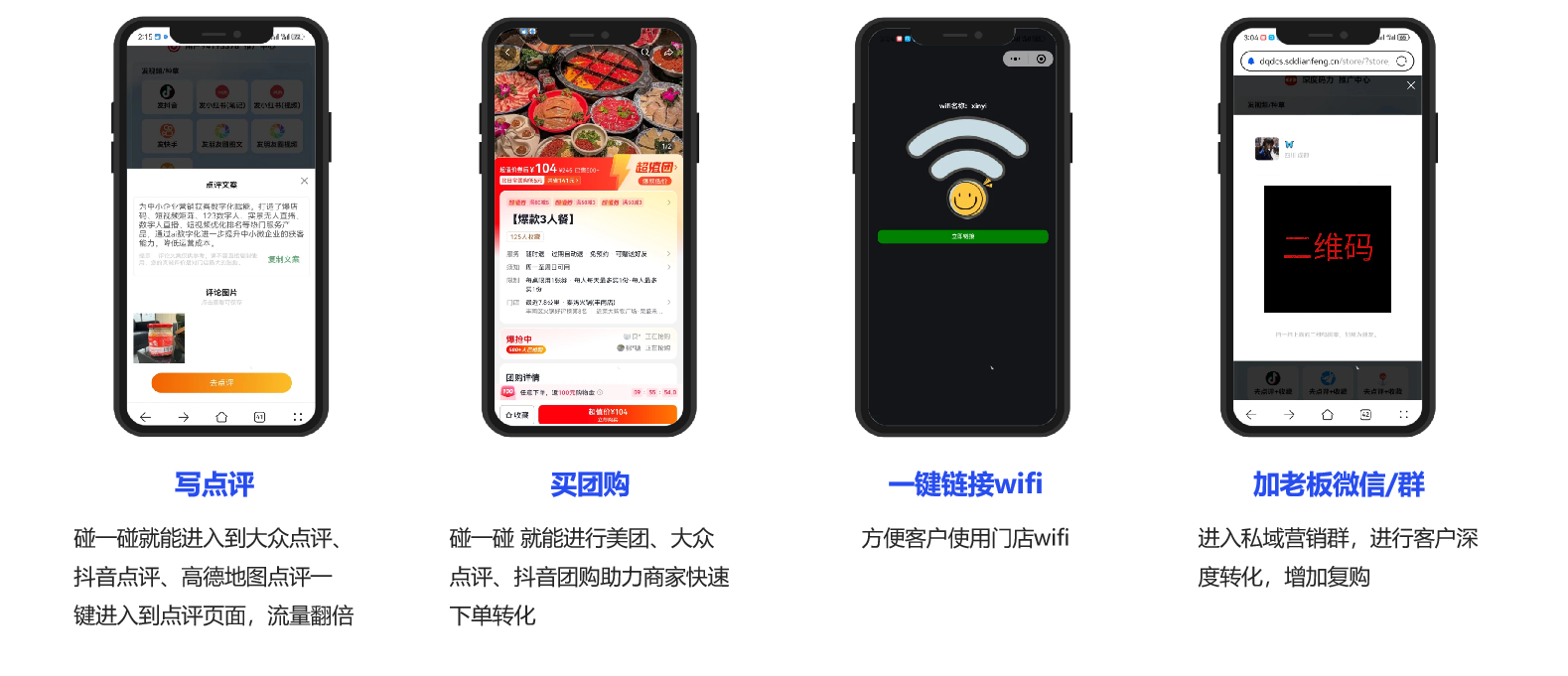 无需为没有流量而烦恼,每位顾客到店进行碰一碰转发商家视频即可实现曝光,不用请达人也能实现千人探店效果,流量暴增!