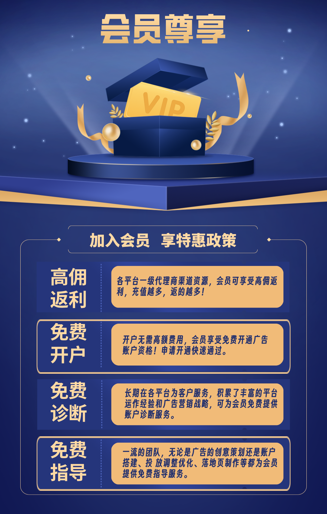 我公司可为您提供朋友圈广告开户、账户充值、广告代投放、账户诊断等服务。如有需求,可联系商务经理!